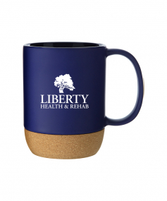 13 oz stoneware: matte color out / gloss color in with cork baseHand wash recommended. Do not microwave. Complies with FDA, Prop 65. 4.625" H x 5" W