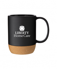 13 oz stoneware: matte color out / gloss color in with cork baseHand wash recommended. Do not microwave. Complies with FDA, Prop 65. 4.625" H x 5" W