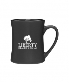 15 oz stoneware: matte color out / glossy color in. Hand wash recommended. Microwave safe with non-metallic imprint. Complies with FDA, Prop 65. 4.625" H x 5.125" W