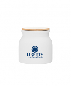 16.9 oz stoneware: matte white out / glossy white in with push-on bamboo lid; Hand wash recommended; Microwave safe with non-metallic imprint; 4 3/16 h x 4 3/16 (w/handle) w ; 500mL.