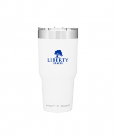 30 oz double wall 18/8 stainless steel thermal tumbler with copper vacuum insulation, clear push-on lid with sliding closure, and powder coated finish