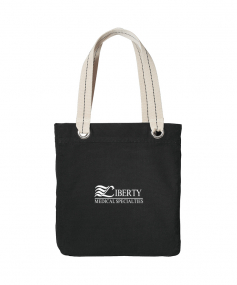 The Allie Tote is perfect for shopping, commuting or sightseeing. Contrast lining, striped handles and large metal grommets add a touch of whimsy to this casual tote. 11 Oz., cotton canvas. Interior zippered pocket. 13.25" W x 15.75" H x 3.5" D.