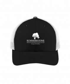 Retro trucker cap with 100% polyester mesh back panel.